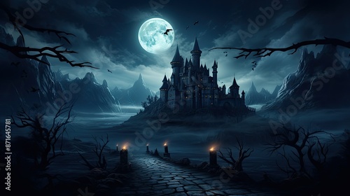dark, holiday, moon, halloween, night, castle, cemetery, illustration, cemetery, scarey, skittish, horror, celebration, evil, background, creepy, silhouette, party, october, autumn, black, bat, ghost, banner, tree, sorcerer, invitation, festival, abstract, pumpkin, darkness, mystery, haunted, cartoon, sky, fear, landscape, design, grave, card, vector, fly, vintage, gravestone, poster, three-dimensional