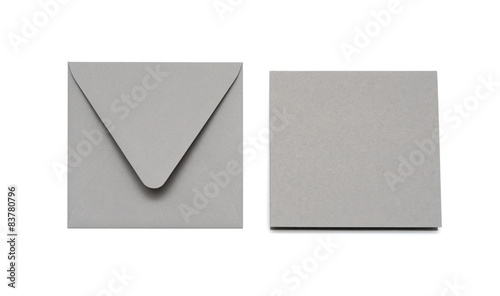 Gray envelope and card on white with shadow