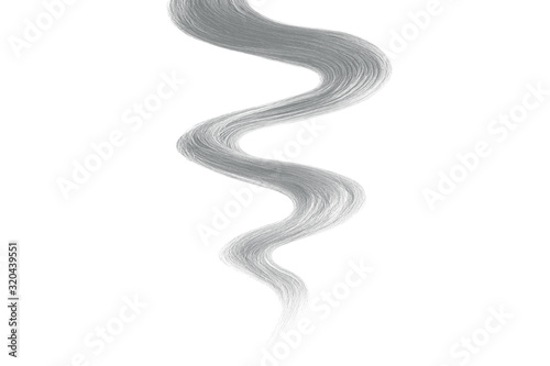 Gray hair on white background, isolated. Thin curly thread