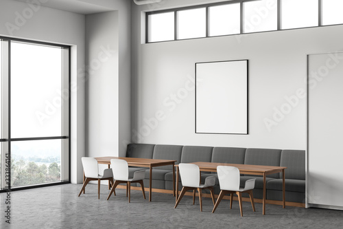 eatery, cafes, bar, interior, poster, design, modern, table, nobody, empty, culture, hall, wall, hot drink, cafeteria, industry, chair, classic, business, floor, breakfast, comfortable, decoration, dinner, style, room, art, couch, sofa, food, service, relax, seat, lifestyle, minimalism, window, panoramic, three-dimensional, render, illustration, concept, white, concrete, grey, wood, banner, up, mock, copy, space