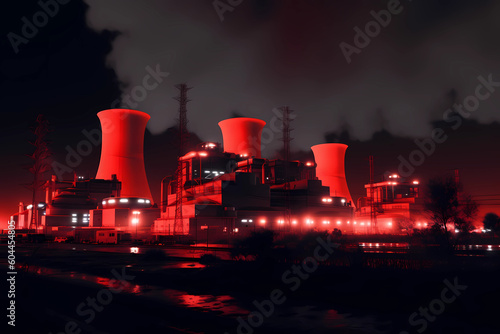 Grayscale Nuclear Reactor Highlighted in Red (Generative AI)