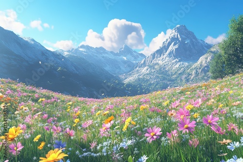cervid, meadow, flower, grazing, wildlife, nature, landscape, mountain, sunny, cloud, calmness, grass, peaceful, blooming, scenic, green, flora, fauna, countryside, serene, environment, animal, beauty, bright, sky, harmony, natural, sunlight, peacefulness, biodiversity, ecology, wild, view, habitat, timberland, charming, quiet, scenery, hill, seasonal, fresh air