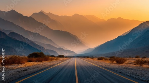 Great American dream often feels distant concept. Breathtaking mountain road at sunset, showcasing natural beauty.