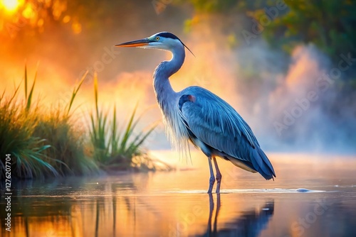 Great Blue Heron at Dawn: Serene Morning Wildlife Photography