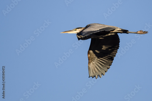 Great Blue Heron Flying in a Blue Sky