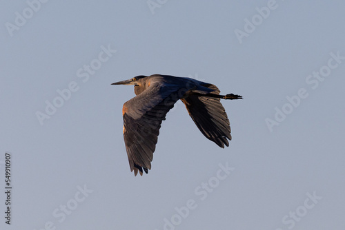 Great blue heron in beautiful light, seen in the wild in South Oregon
