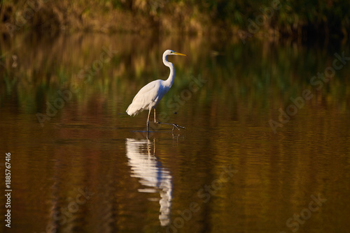 Great egret ,,ardea alba,, in its natural environment, Danubian wetland, Slovakia