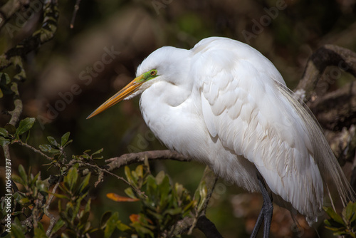 white egret, florida, bird, bush, green, mating, nature, orange, pure, watching, wildlife