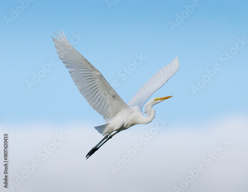 bird, sky, white, animal, wing, egret, wildlife, fly, feather