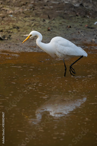 great egret, egret, wading bird, shallow water, long neck, water bird, wildlife, nature, marsh, mudflat, wild bird, heron, bird, white, beak, great, feather, snowy, beach, florida, wild, lake, bird, crane, sea, feather, water, animal