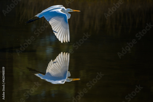Great Eqret Reflected in Flight