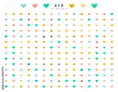 Great set of 210 color emotions isolated on white background. Character emoji for Web. Anger and compassion. Laughter, tears. Smile sadness surprise. Happiness fear.
