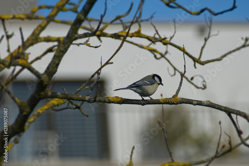 Great tit (Parus major) sitting in a tree in Zurich, Switzerland