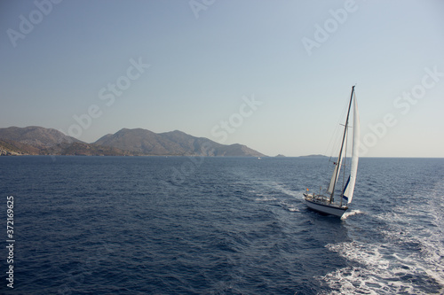 boat, sea, sail, yacht, sailboat, sailing, water, ship, ocean, blue, summer, sky, travel, vessel, nature, vacation, wind, sport, nautical, recreation, yachting, wave, white, sail, island
