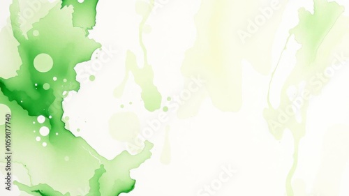 Green abstract watercolor background resembling organic shapes and textures, white, vibrant, backdrop
