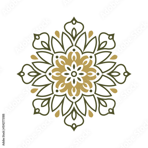 mandala, design, create, floral, geometric, artistic, calm, earthy, simple, isolated, center, pattern, leaf, motif, element, shape, form, drawing, symmetry, graphic, illustration, decorative, spiritual, vintage, elegant, natural, background, green, gold, beige, white, decoration, print, artwork