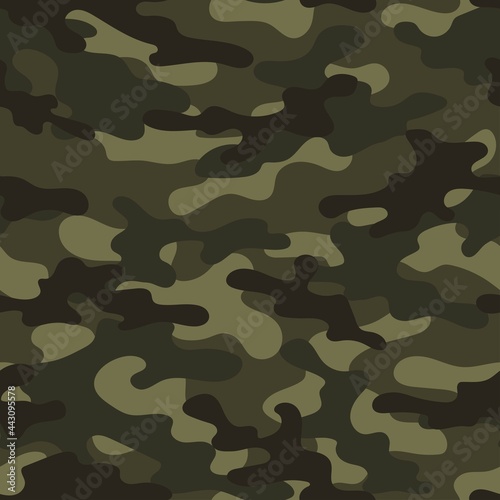 Green Camouflage seamless pattern. Trendy style camo, repeat print. Vector illustration. Khaki texture, military army hunting