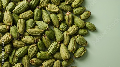 cardamon, green, pod, scattered, surface, spice, aromatic, natural, organic, culinary, seasoning, herbal, fresh, whole, favor, plant, ingredient, epicure, kitchen, food, condiment, healthy, botanical, natural food, cooking ingredient, vibrant, textured, detailed, no people