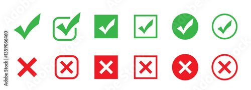 Green check mark and red cross mark icon. Vector illustration. Check mark icons .