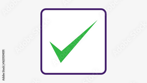 checkmark, tick, yes, approve, accepted, correct, success, confirmation, agreements, done, completed, task, list, checklist, document, paper, rectangle, border, purple, green, white, simple, icon, symbol, graphic, design, clean, minimalist