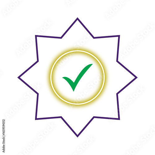checkmark, tick, yes, correct, approved, accepted, confirmation, success, agreements, positive, satisfaction, quality, guarantee, certification, award, starburst, emblem, symbol, icon, graphic, design, element, illustration, white background, isolated, green, yellow