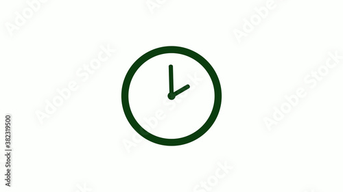 Green dark 12 hours circle clock icon on white background,clock icon,new clock icon