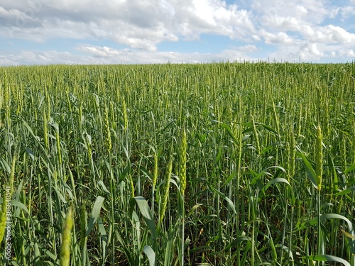 field, sky, green, grass, agriculture, wheat, landscape, nature, blue, summer, meadow, farm, spring, crop, plant, cloud, horizon, rural, cloud, day, countryside, corn, land, rice, growth, farming, natural, season, cereal, harvest, scene, background