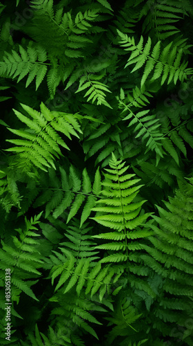 Green Fern Leaves, Texture Background Abstract Image Pattern, For Wallpaper, Background, Cover and Screen of Cell Phone, Smartphone, Computer, Laptop, Format 9:16 and 16:9 - PNG