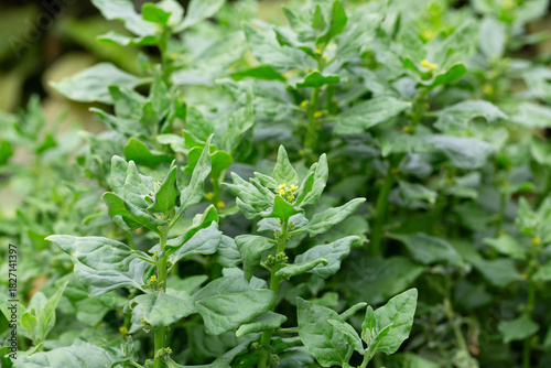 green fresh spinach leaves in the garden