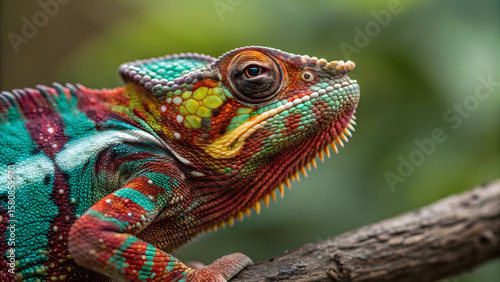 Green iguana lizard closeup with detailed scales and eye