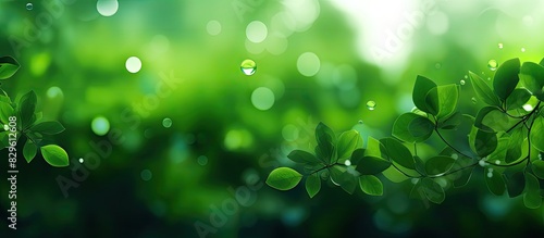 Green Leaf background Blurred leaves and circular bokeh Abstract wallpaper for backdrop and design. Copy space image. Place for adding text and design