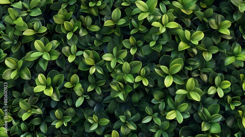 Green leaf pattern background top view. A seamless pattern of vibrant green boxwood leaves