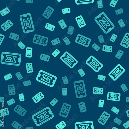 Green line Buy cinema ticket online icon isolated seamless pattern on blue background. Service Concept. Vector