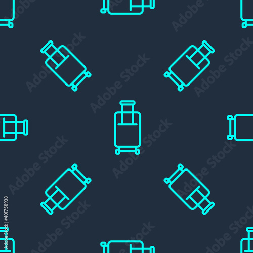 Green line Suitcase for travel icon isolated seamless pattern on blue background. Traveling baggage sign. Travel luggage icon. Vector.