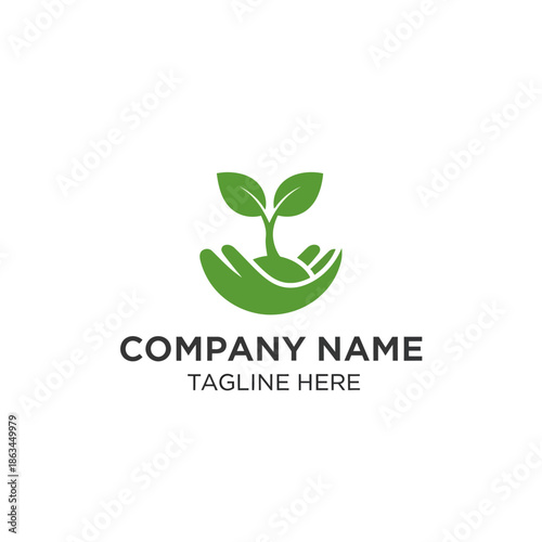 Green logo featuring hands cradling a small plant with two leaves, symbolizing growth, nature, and environmental care.