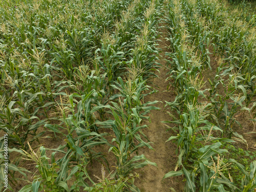 Green maize crop growing at farm