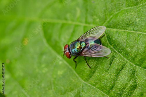 Green Metallic Fly on a Leaf