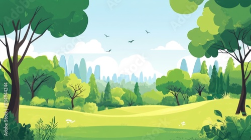 Green park and forest landscape showcasing lush greenery and trees promoting sustainability and eco-friendly travel destinations in nature.