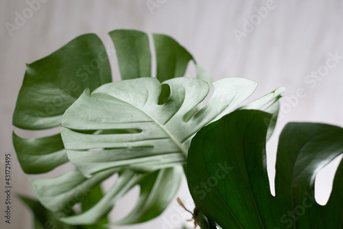 Green plant monstera on white background.