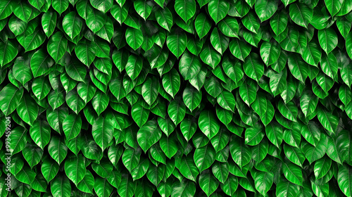 green plants growing in a lush foliage background of tropical leaves like anthurium, epiphytes, or ferns, forming a beautiful green plant