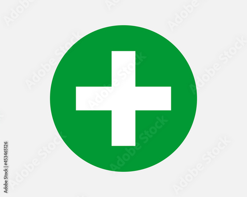 Green plus sign. Vector icon. Cross symbol of safety guidance.