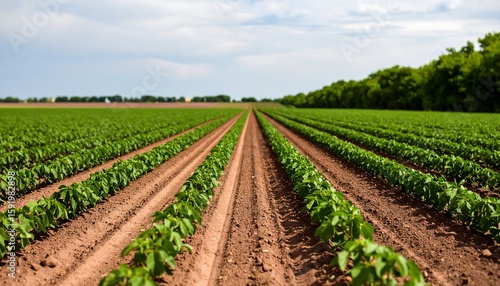 field, row, potato, green, plant, agriculture, crop, dirtied, farmland, cultivated, rural, landscape, horizon, nature, summer, growth, earth, brown, blood-red, lush, vibrant, detailed, cultivation, straight, parallel, line, perspective, distant, tree, sky, cloud, daylight, fresh, healthy, productive, abundance, farming, natural