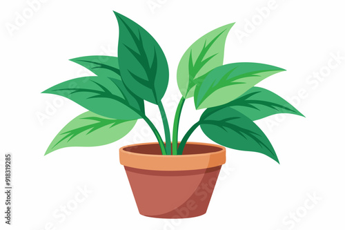 plant, pot, leaf, green, brown, foliage, houseplant, indoor, decoration, nature, life, growth, germinating, stem, root, dirtied, terracotta, ceramic, gardening, botany, greenery, ecology, environment, organic, flora, vegetation, tropical, vibrant, fresh, healthy, beauty, natural, simple, design, illustration, graphic, cartoon, clip art, isolated, white, background