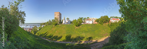 Green ravine with church and houses in Nizhny Novgorod, Russia