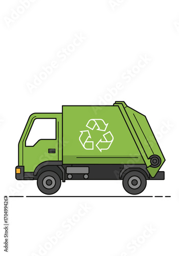 truck, recycling, green, vehicle, transportation, symbol, environment, waste, management, garbage, illustration, vector, clean, eco, ecology, dump, bin, container, collection, service, city, urban, road, street, drive, auto, industry, resource, reuse, reduce, reusing, signs, arrow, circle, graphic, design, art, drawing, outline, flat, icon, clip art, isolated, white, background, side, view, machine, mechanical