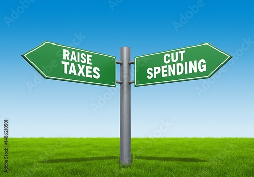 Green Signpost Shows Tax Increase or Spending Cuts Choices
