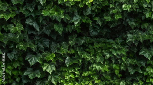 Green wall in the garden with natural background fresh leaves and foliage as a background of nature and landscaping. Wall completely covered lush green plant. Realistic 3D illustration. Generative AI