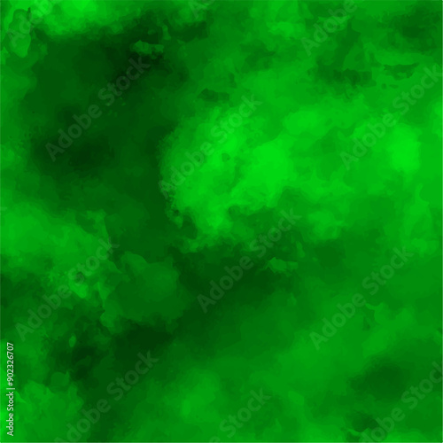 Green watercolor paper textured with splashes. Abstract painted artistic grunge design with forest green. Explosive powder green on black background. Green smoke with fog texture