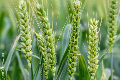 Green Wheat. Beautiful Rural Scenery with Lush Fields of Wheat in Summer