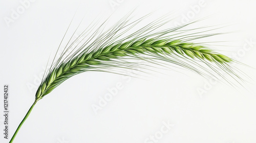 Green wheat stalk isolated on white background for nature design